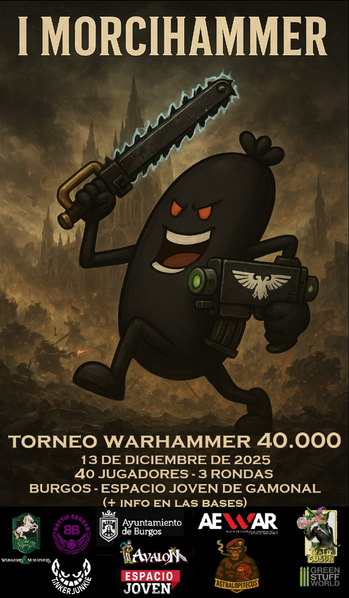 ¿Qué hay mejor que una morcilla de Burgos? ¡Un torneo de Warhammer en Burgos! Aunque ya tiene sus plazas completas, os recordamos que para diciembre hay cita de Warhammer 40k en Burgos, donde se celebrará el I Torneo de Morcihammer, una apuesta que ha tenido una gran acogida y respuesta