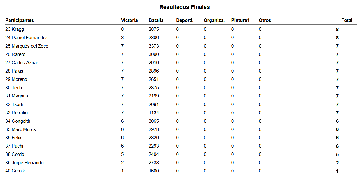 Enhorabuena por su triunfo y al «Clan Kharnuz«, con la colaboración de «Los Últimos de Bugman«, por la organización de este torneo en la zona Norte.