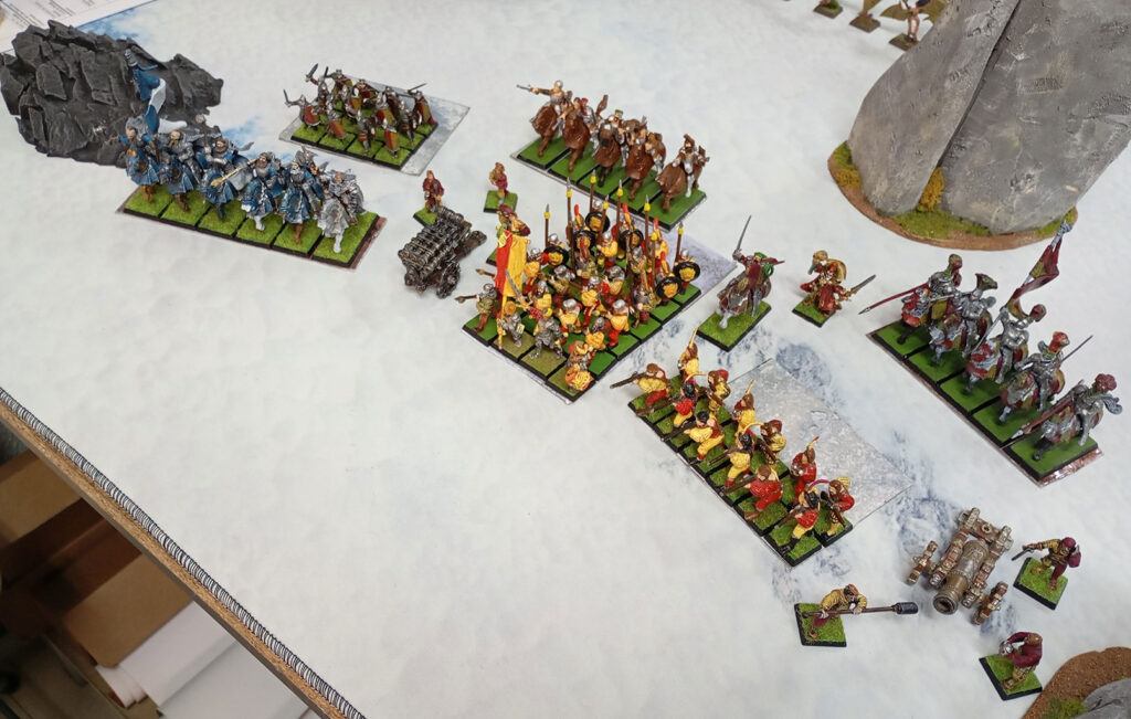 Previo a la hora de comer, los generales dispusieron sus ejércitos en formación listos para pasar revista por los jueces de pintura: