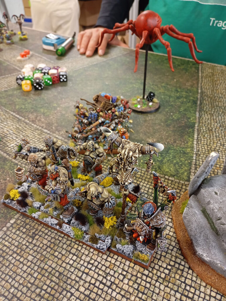 Si habeis visto con detalle las fotografías, sin duda os habréis detenido en los ogros de Gragh, que se llevaron el justo premio de Ejército Mejor Pintado. El podium lo corono Aimar, Campeón Absoluto del torneo, quién le tocó el honor de empuñar la increíble réplica a tamaño real de Gal Maraz. Nasgoth, como Mejor General, Deemehache como Jugador Más Deportivo e Inquisitor, con el premio de Mejor Ejército, terminaron de conformar el resto de categorías premiadas.