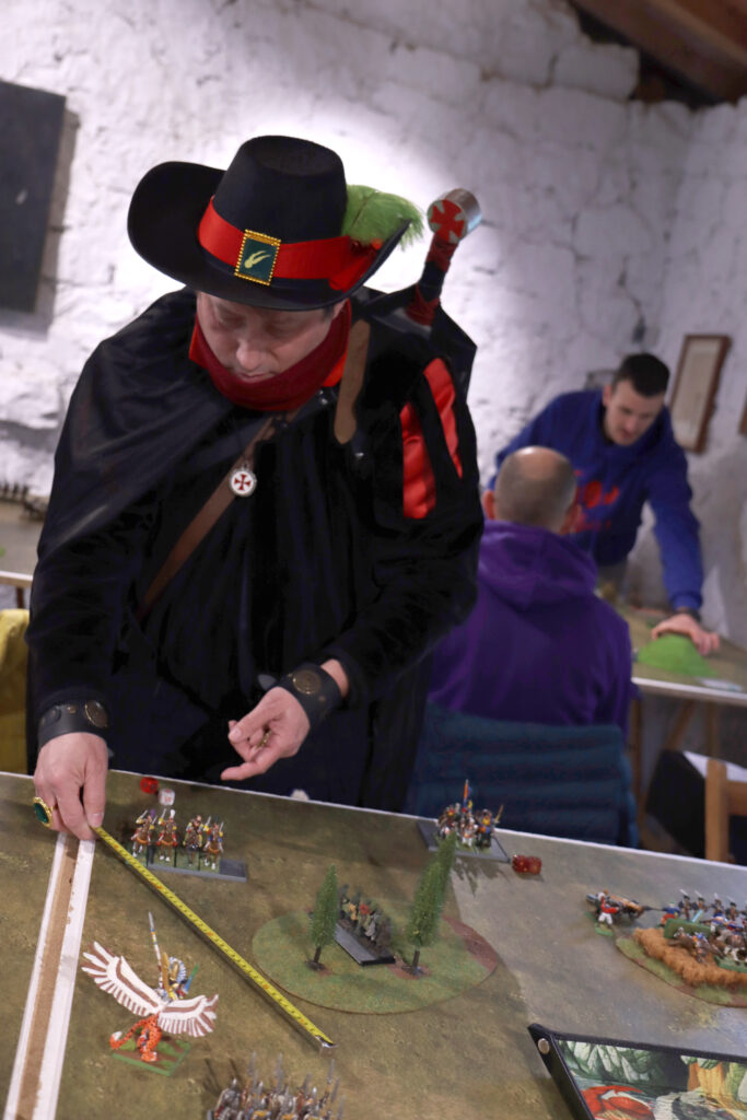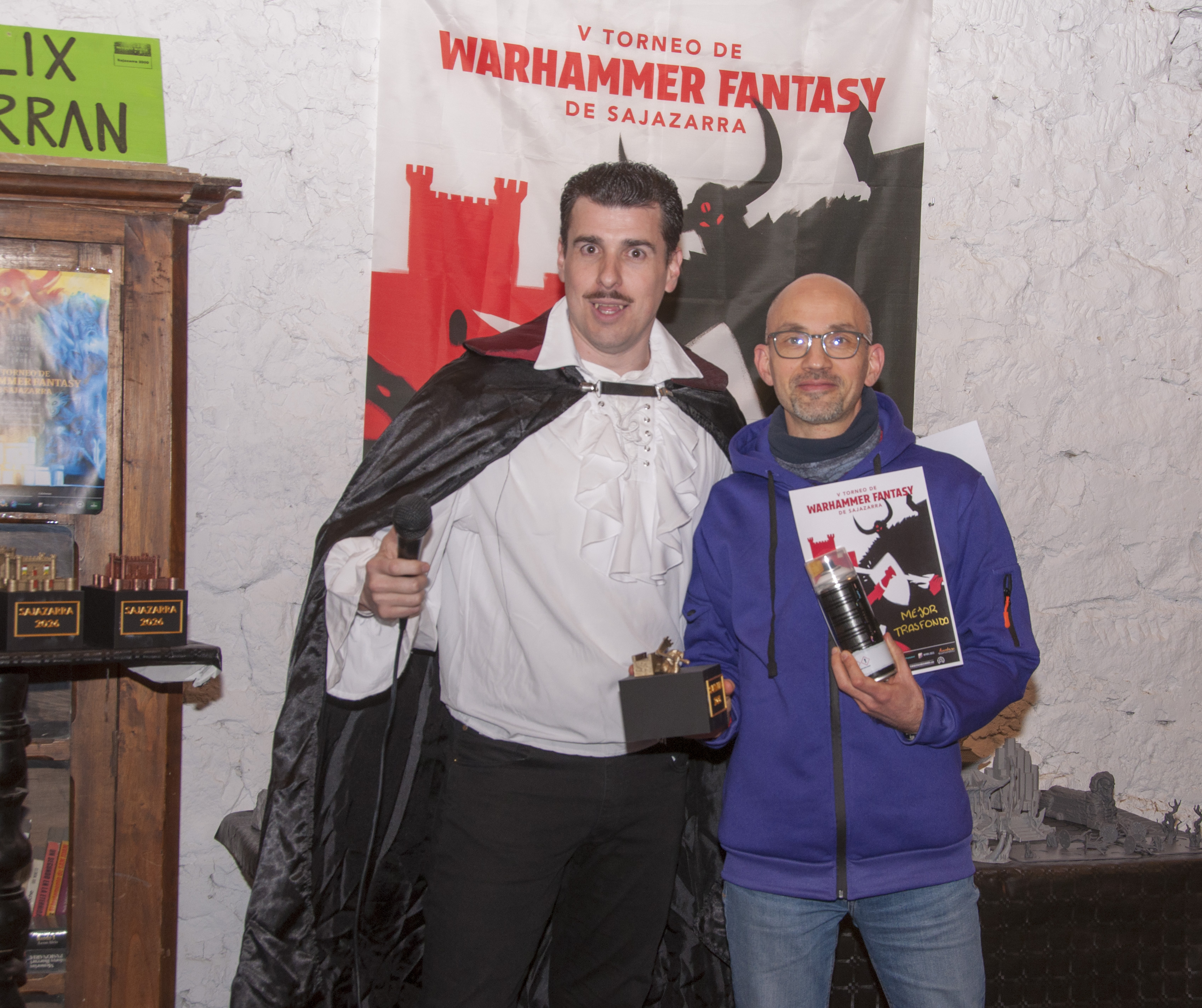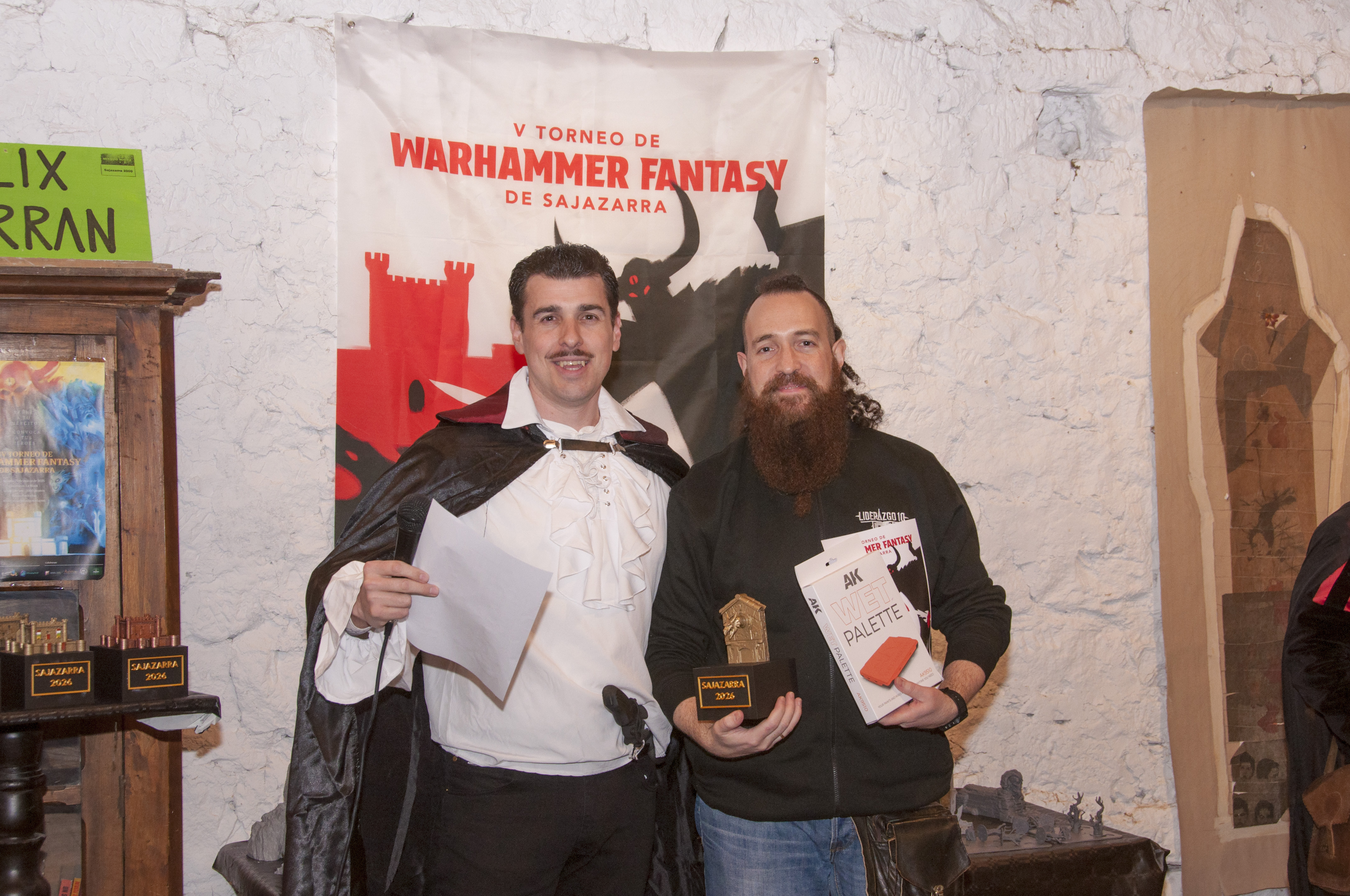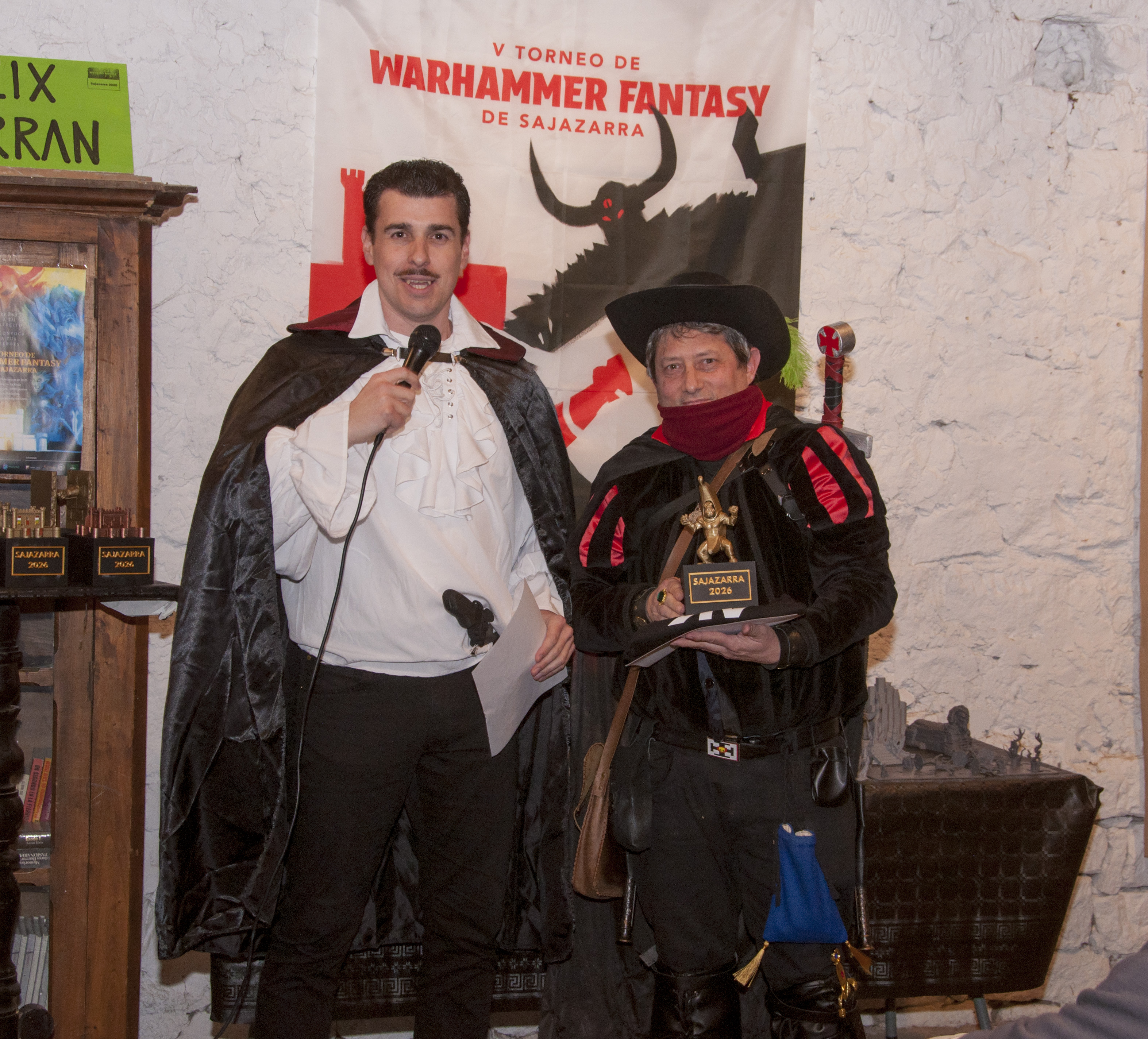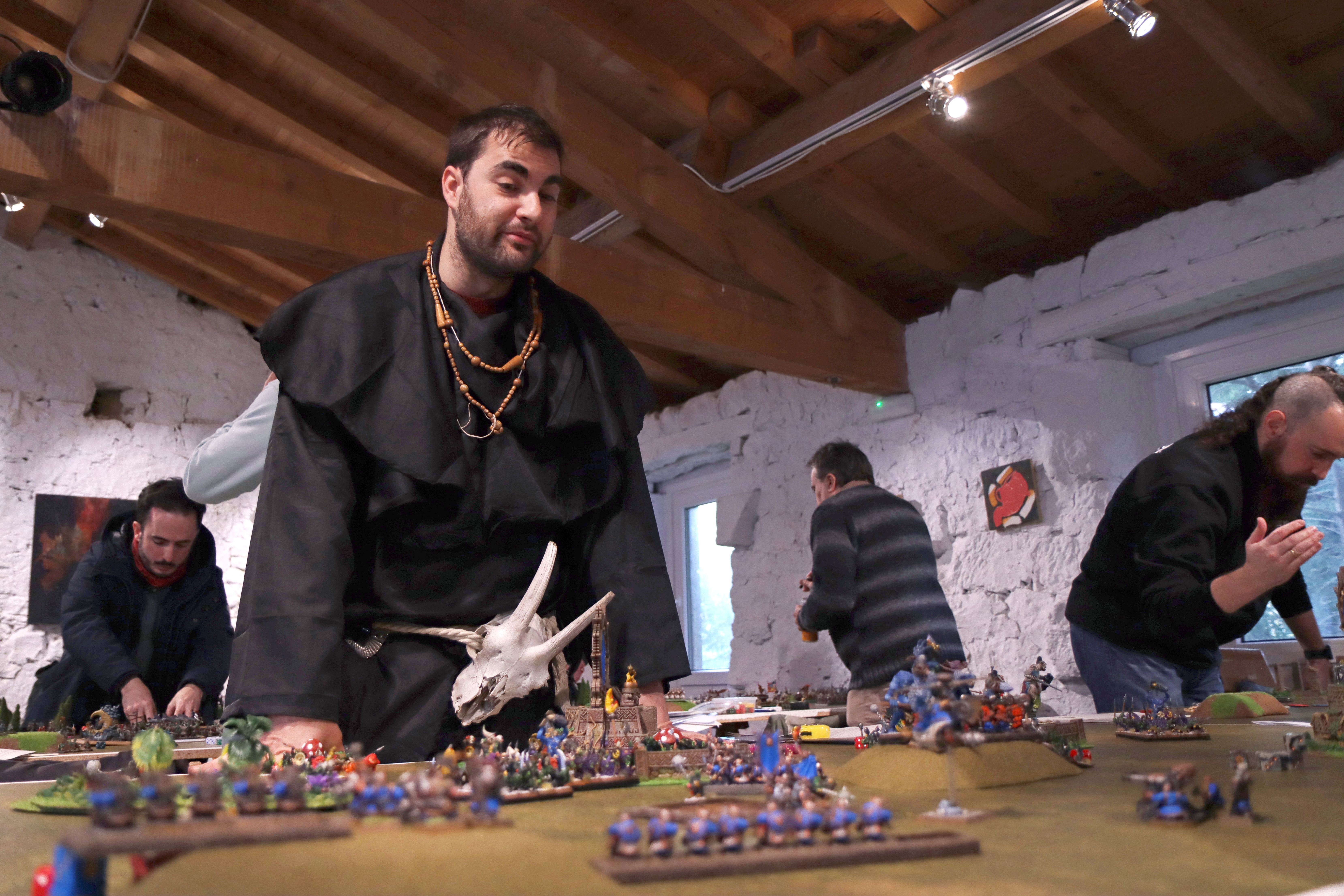 Ya la puesta en escena del torneo, con varios jugadores engalanados para la ocasión, prometía una de esas veladas de Warhammer pensadas para el disfrute. Y es que, la organización había propuesto una categoría de cosplay entre los premios a otorgar y varios participantes respondieron al envite, caracterizándose, con más o menos estilo, acordes a su lista de ejército. Así, entre los participantes encontramos a un cazador de brujas, todo un seño vampiro (de Mordheim), junto a otros particulares atrezzos, con los poner un toque de humor al torneo y relajar las tensiones durante las partidas.