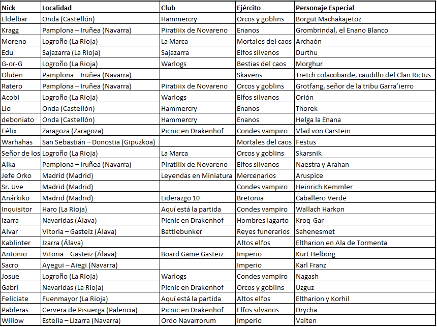 • Campeón absoluto: Eldelbar – Orcos y goblins (Borgut Machakajetoz) – Hammercry