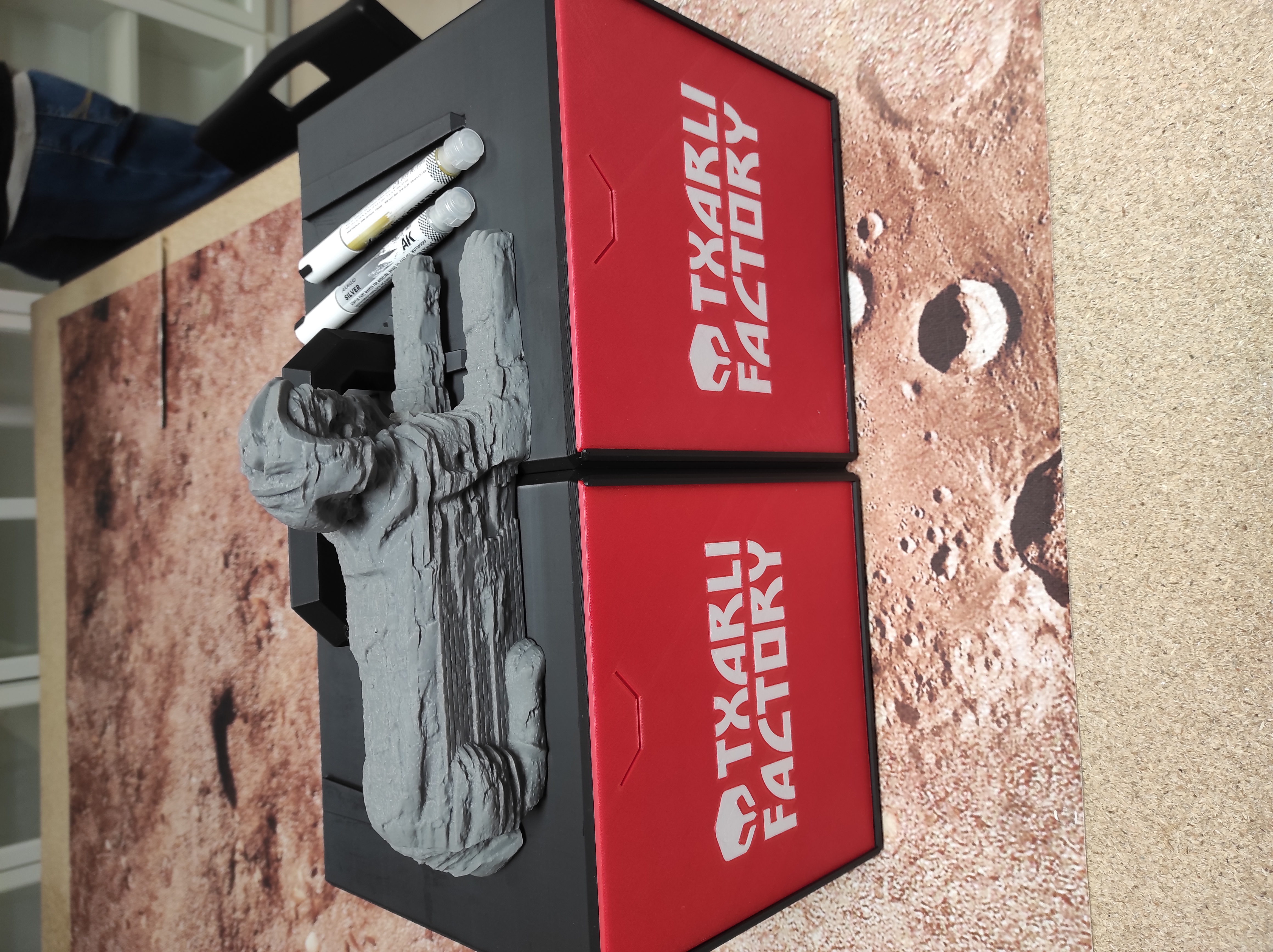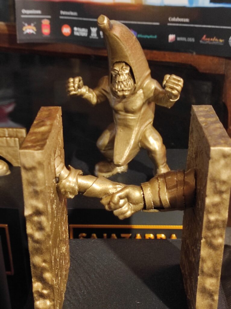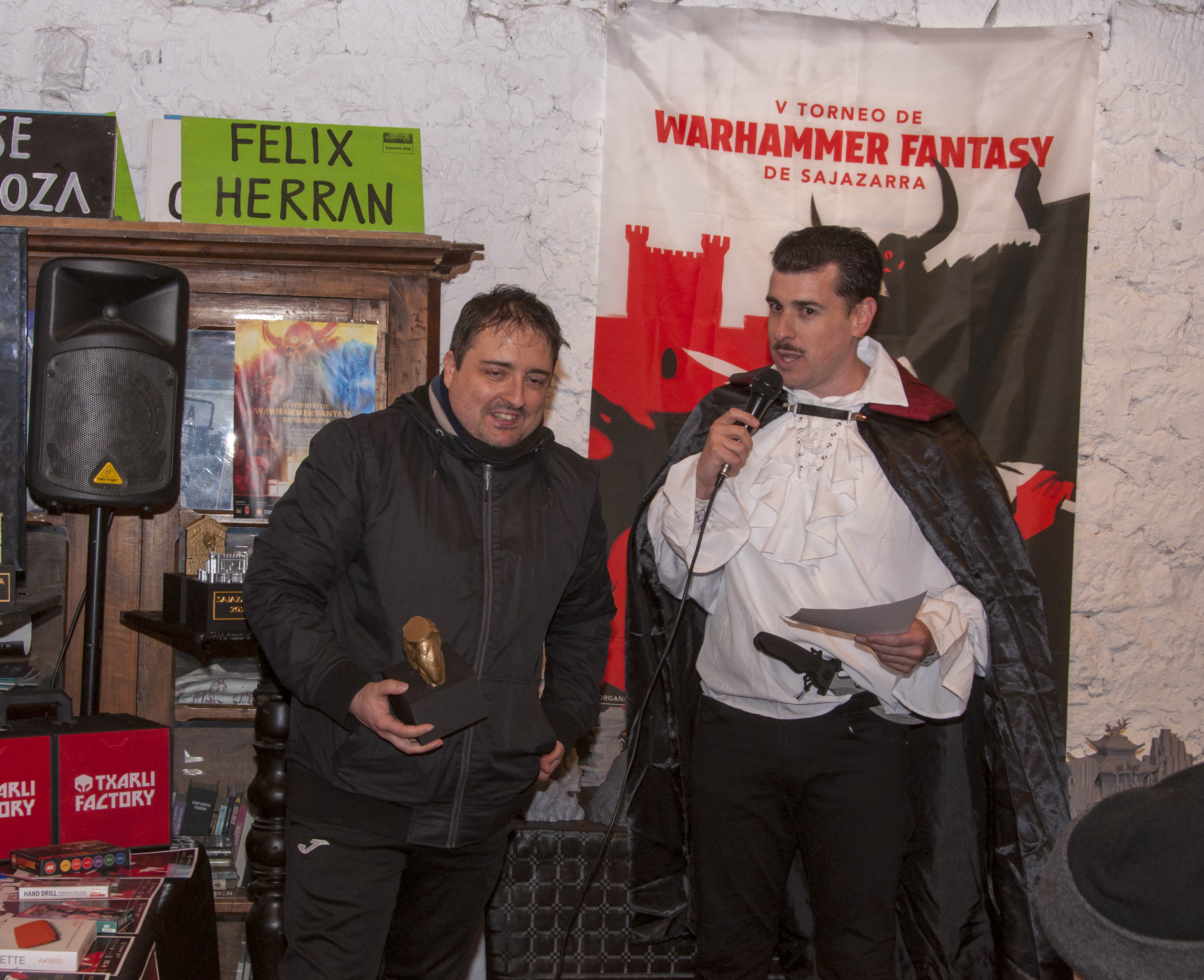 Txarly Factory, además de un gran surtido de escenografía 3D para sortear entre los participantes, tuvo el gran detalle de incluir como regalo entre los concursantes de cosplay, un juego de transportes modulares para tropas. Putopunky, no tuvo una buena digestión del mondongo de troll de la cena y, pese no haber podido asistir al torneo, se llevó el premio del sorteo por su caracterización de Gran Matarife, con el que por fin podrá resolver sus problemas de transporte miniaturas gracias a Txarly Factory.