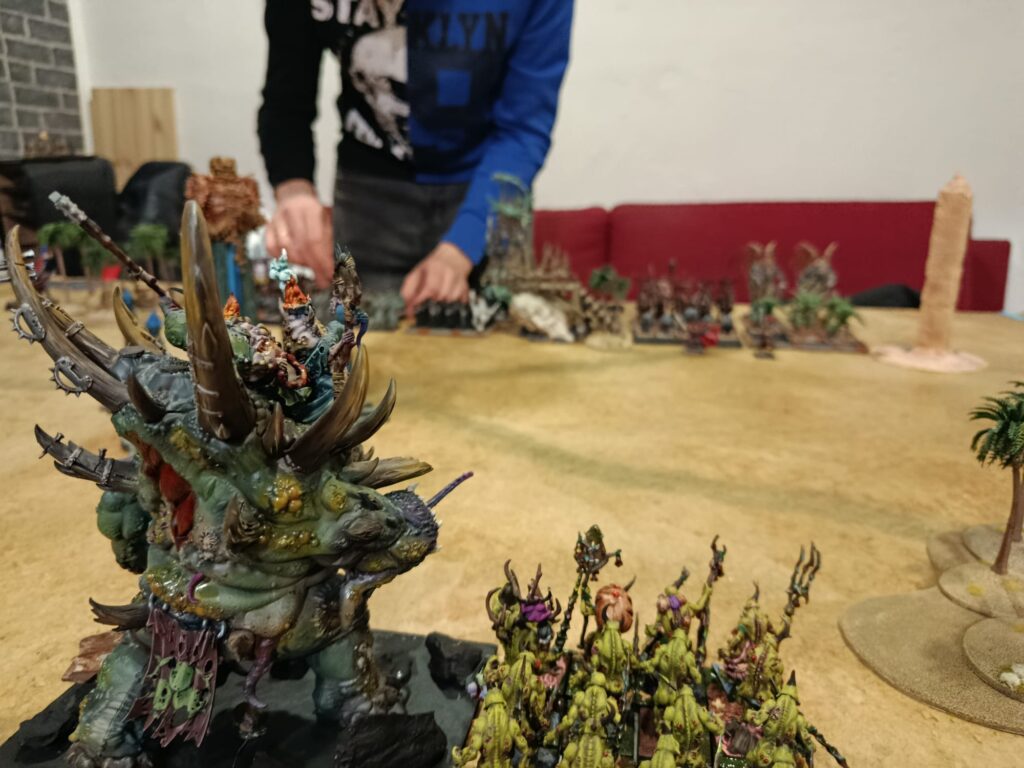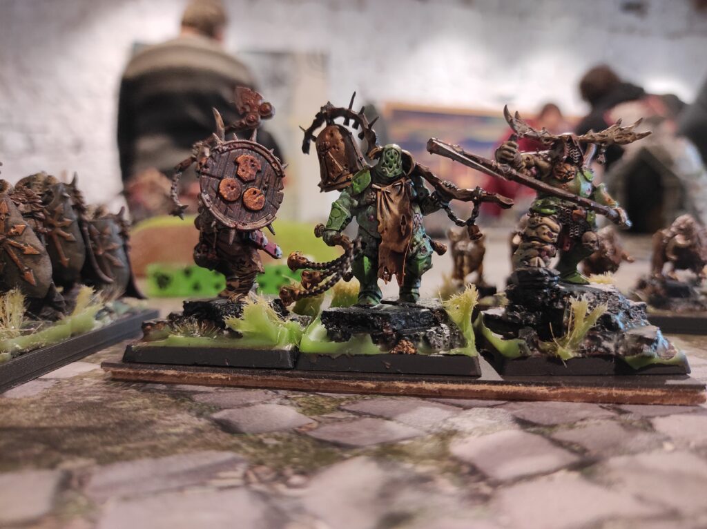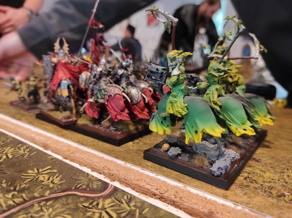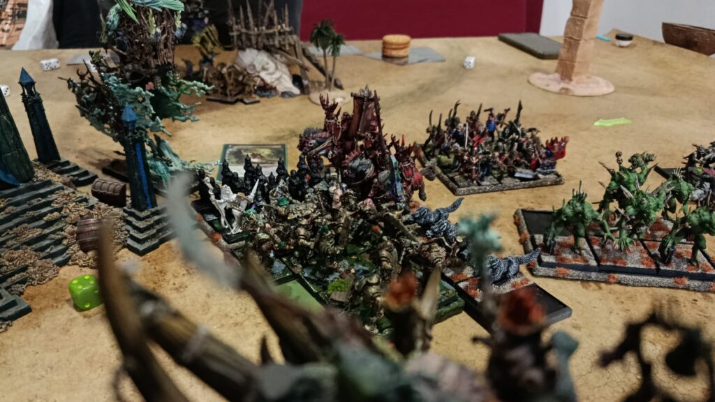 El generoso número de puntos destinado a la elaboración de listas, junto a la posibilidad de incluir personajes especiales, permitió que en las mesas de juego participarán las leyendas más destacadas del trasfondo de Warhammer; rivales poderosísimos con reglas de las que te hacen estremecer (si no es porque las del tuyo son más terribles todavía). Este mismo escriba tuvo que arremangarse durante la tercera ronda para comandar al mismísimo Nagash contra Grombrindal, el Enano Blanco (spoiler, no le fue bien al Gran Nigromante).