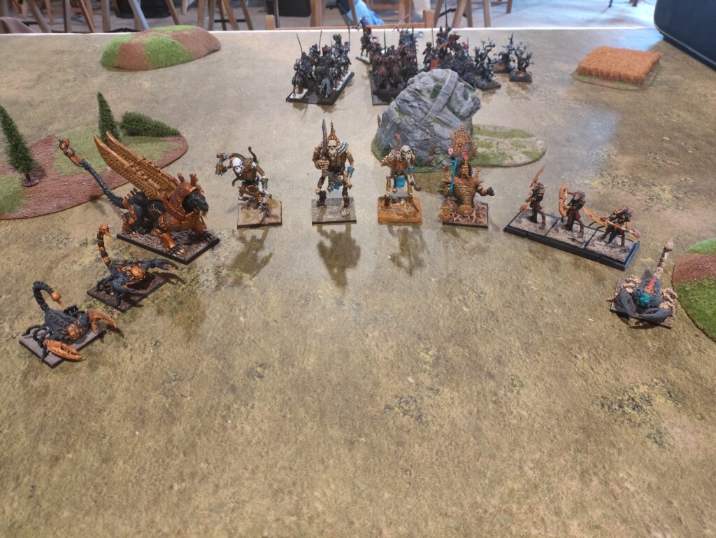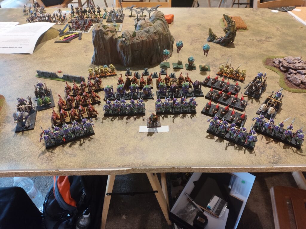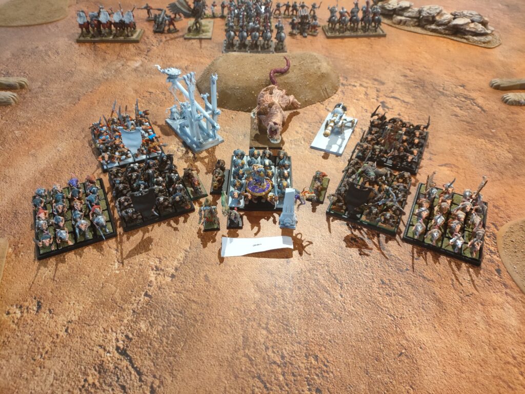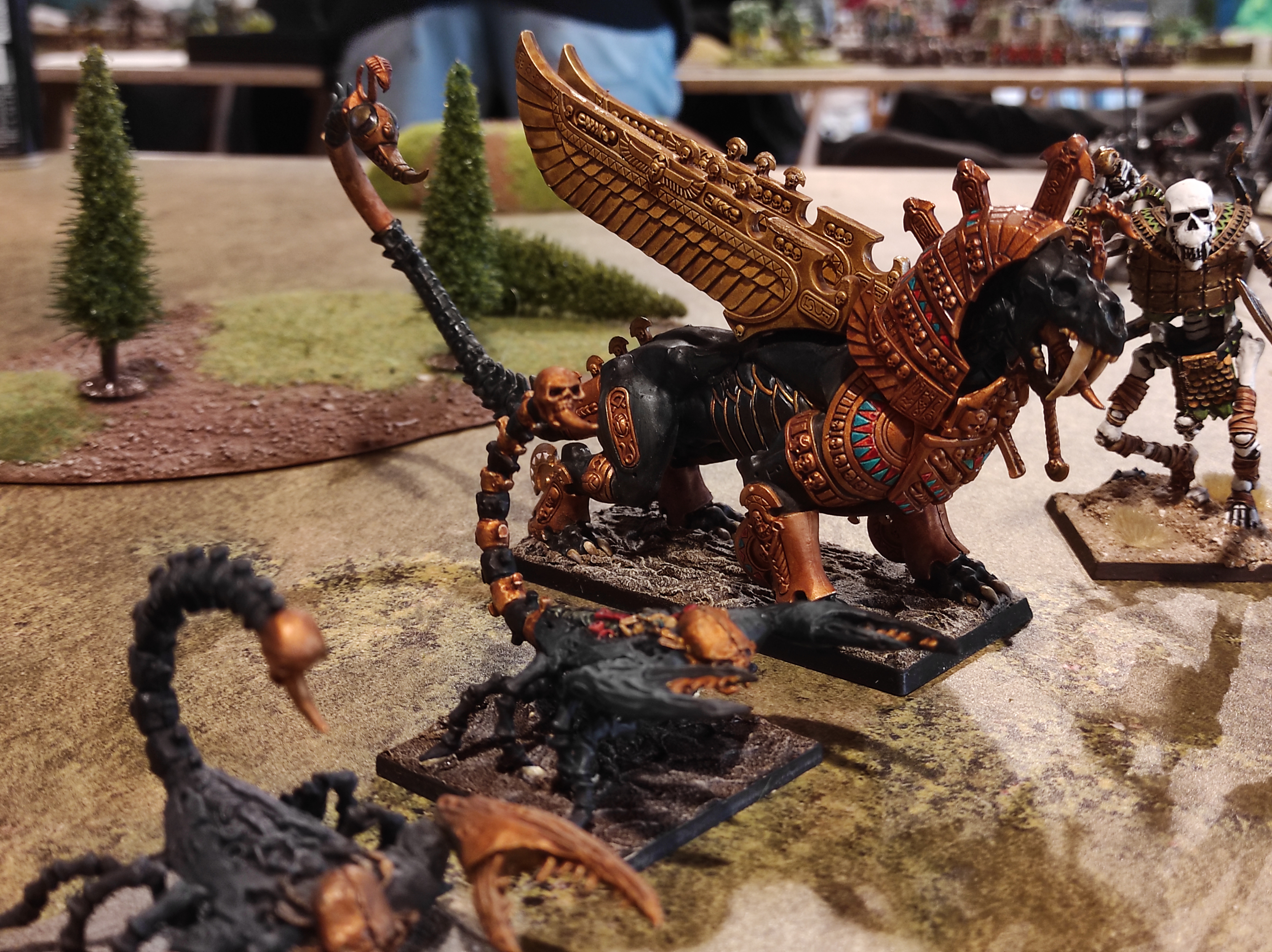 El generoso número de puntos destinado a la elaboración de listas, junto a la posibilidad de incluir personajes especiales, permitió que en las mesas de juego participarán las leyendas más destacadas del trasfondo de Warhammer; rivales poderosísimos con reglas de las que te hacen estremecer (si no es porque las del tuyo son más terribles todavía). Este mismo escriba tuvo que arremangarse durante la tercera ronda para comandar al mismísimo Nagash contra Grombrindal, el Enano Blanco (spoiler, no le fue bien al Gran Nigromante).