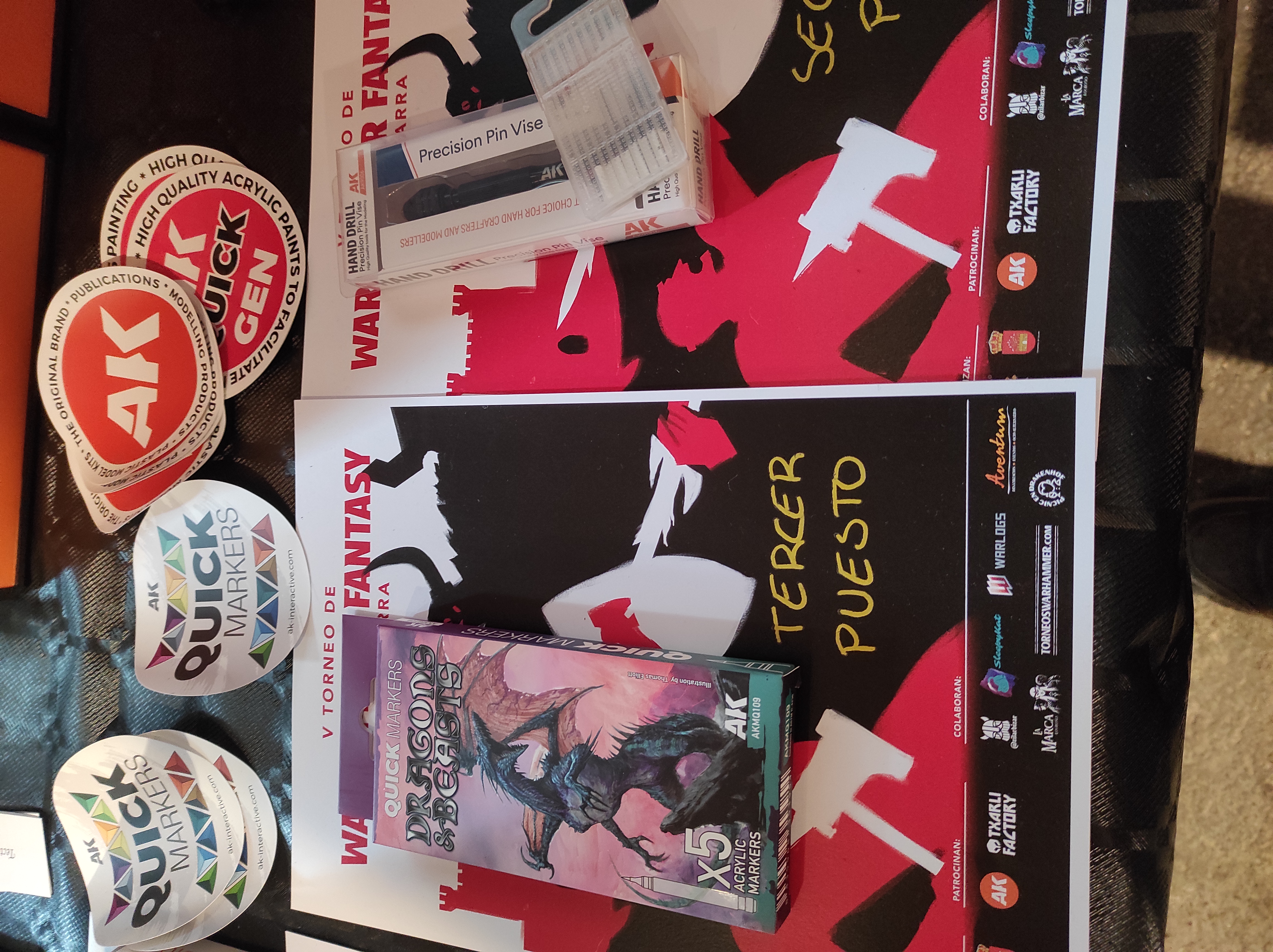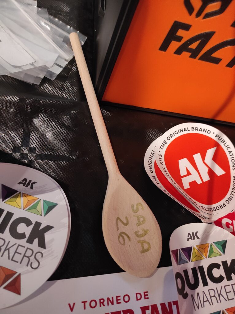 Finalizada la ronda de partidas, era la hora de probar suerte en la ruleta de la fortuna. Y es que el torneo de Sajazarra, cuenta con un particular sorteo entre los participantes, en el que, si has sido un buen cazador de personajes y protector del tuyo, podías conseguir varias tiradas y conseguir diferentes premios que los patrocinadores del torneo habían tenido a bien proporcionar, por lo que varios jugadores salieron nutridos de dados especiales, rotuladores de perfilados de AK-Interactive, junto a otros obsequios.